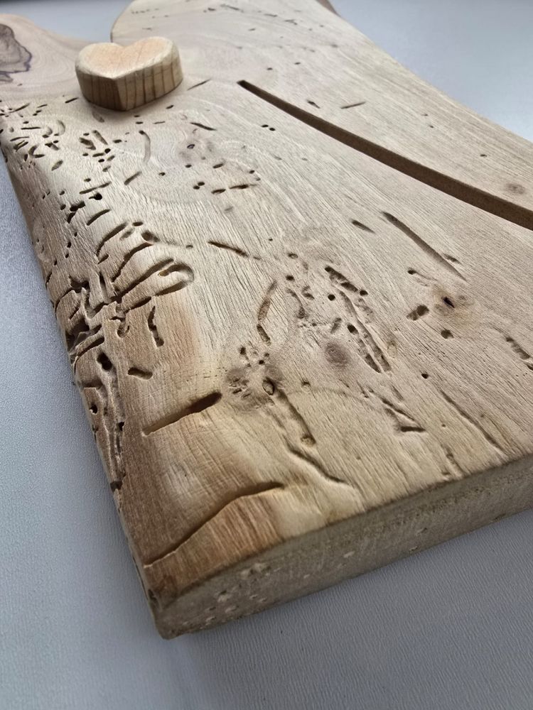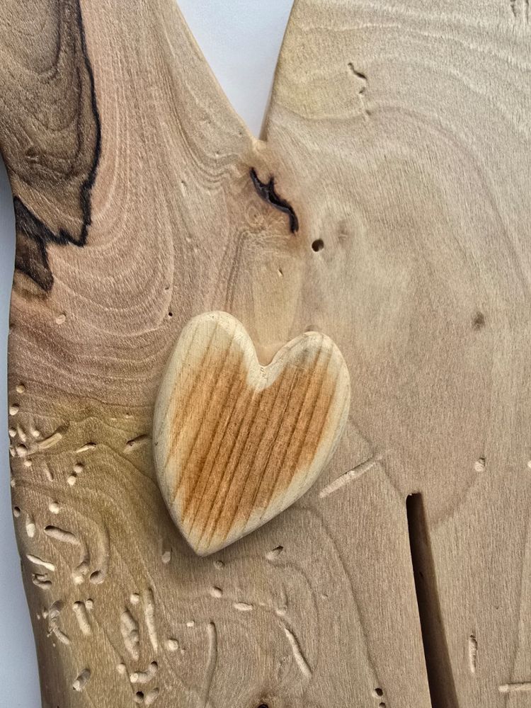 Drewniany ptaszek na desce - serce