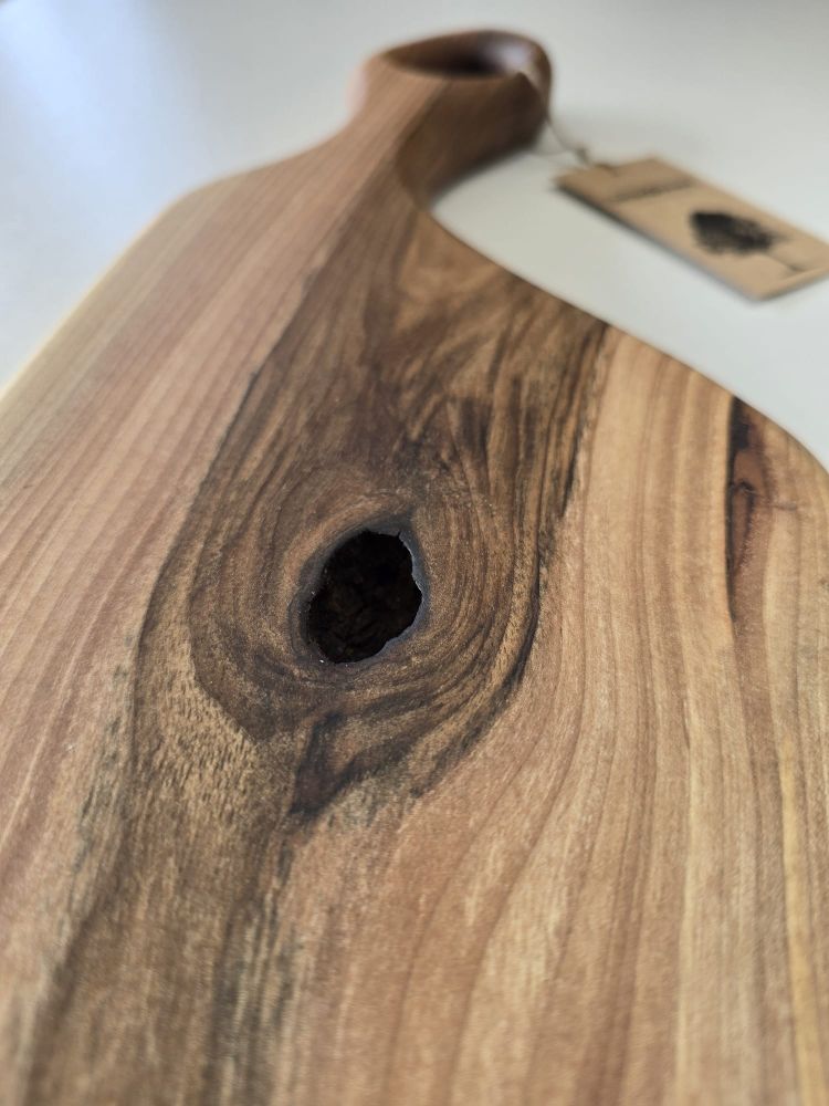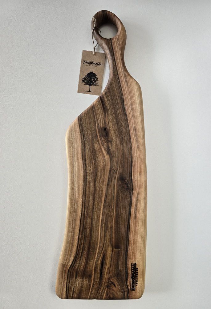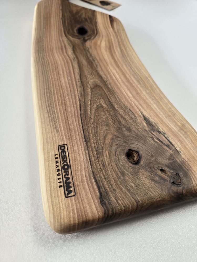 Elegancka i funkcjonalna deska wykonana ręcznie z jednego kawałka drewna orzecha włoskiego. Naturalny kolor drewna, unikalne usłojenie i gładko wykończona powierzchnia sprawiają, że każda deska jest niepowtarzalna i stanowi wyjątkowy element wyposażenia kuchni.